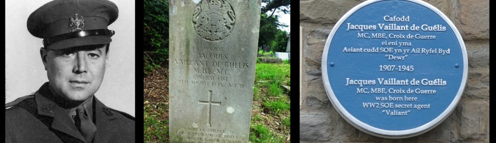 After the accident Jacques was immediately flown to Paris for an operation, and a while later repatriated to a hospital in Burtonwood, Staffordshire, but was to lose his life after further unsuccessful operations on 7 Aug 1945 at the age of 38. His body was returned to Cardiff and cremated and the ashes buried in Cathays Cemetery (plot I.22E) alongside his sister Jacqueline. His wife Beryl died in Paris in 1978. His life has been recorded in the book ‘Jacques de Guélis SOE’s Genial Giant: His Life, His War & His Untimely End’ by Delphine Isaaman in 2018. Other articles include those found in Wikipedia, the Western Mail and on BBC. He is remembered on Wrekin College WWI memorial plaque and Magdalen College WWII memorial plaque as well as a blue plaque on 3 Museum Place. Commonwealth War Graves Commission record.