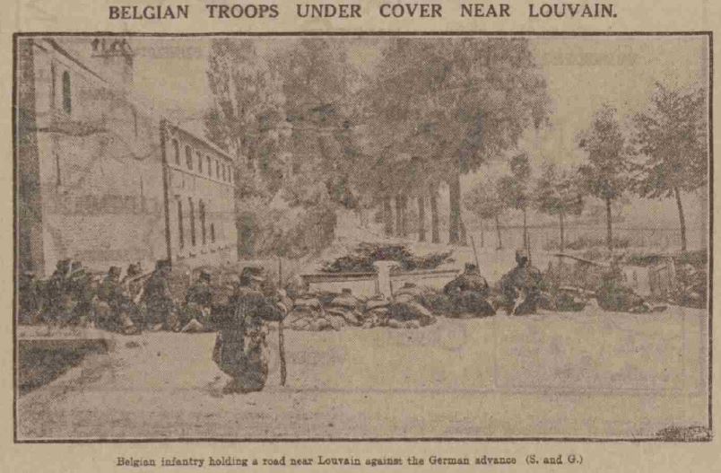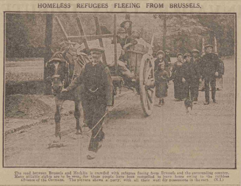 The carnage received a lot of press attention and sympathy in the UK – the “Rape of Louvain” was a popular theme, accompanied by photographs showing the destruction of the medieval town centre. For the civilian population, there was little choice but to escape the devastation. Many thousands crossed the border into France, and the UK set up numerous relief funds and local organisations were established to help refugees. In all, some 200,000 – 250,000 refugees came to British shores.