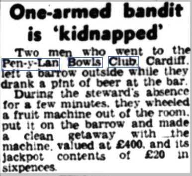 Gaming machines had been installed and were bringing in additional income. After the annual License fee of £75 had been paid a large surplus was being accumulated from the fruit machines.