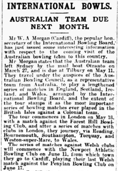 And to finish with here’s a story from the Western Mail in 1926 reporting the elected captain heading for Australia. It looks like the typesetter on the Western Mail nightshift was being a bit mischievous!
