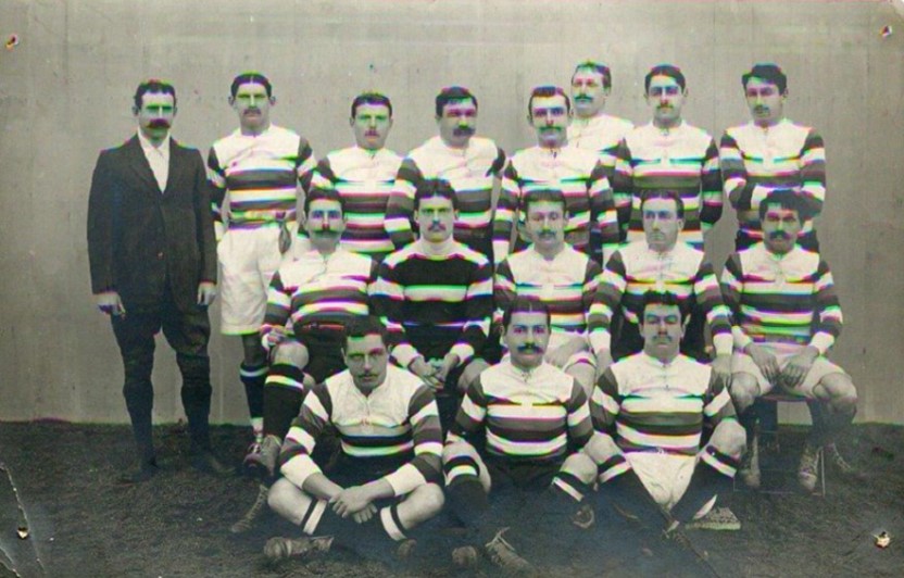 1910 Stade Nantes Université Rugby Club (SNUC), Charles Leyshon in civilian clothes, Percy Bush, 2nd row, 2nd from right (Pic credit SNUC Archives).