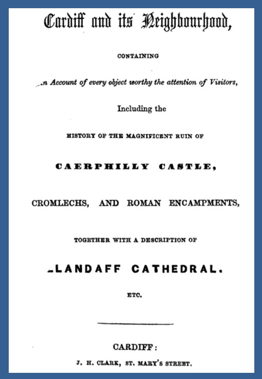 In 1866 John Biggs (Jnr) married Emily Sophia Clark, originally from Usk. She was daughter of a newspaper editor and publisher James Henry Clark. Please allow me another brief aside. In 1850 Cardiff was growing rapidly and J.H.Clark came down from Usk and opened a branch of his business in Saint Mary Street. In 1853 he wrote and published ‘Cardiff and its Neighbourhood’ which was the first guide book about Cardiff to be published. After four years however he sold the business because of the inconvenience and expense of regular travelling down to Cardiff.