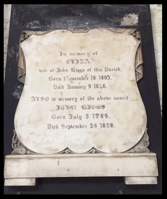 Plaque to Eliza and John Biggs, St Mary, Bute Street,