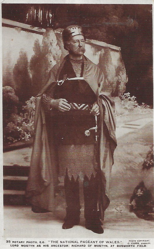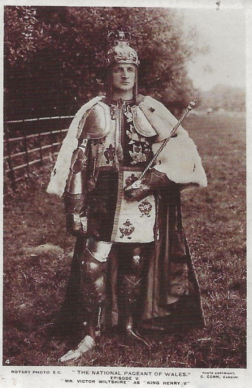 Some of the performers of this pageant were even playing roles of their actual ancestors many generations before. Lord Mostyn, for instance played Richard ap Howel of Mostyn from the Battle of Bosworth. And even when a rare outsider was brought in, to play Henry V for instance, no expense was spared and an important and influential West End actor in the shape of Victor Wiltshire was hired.