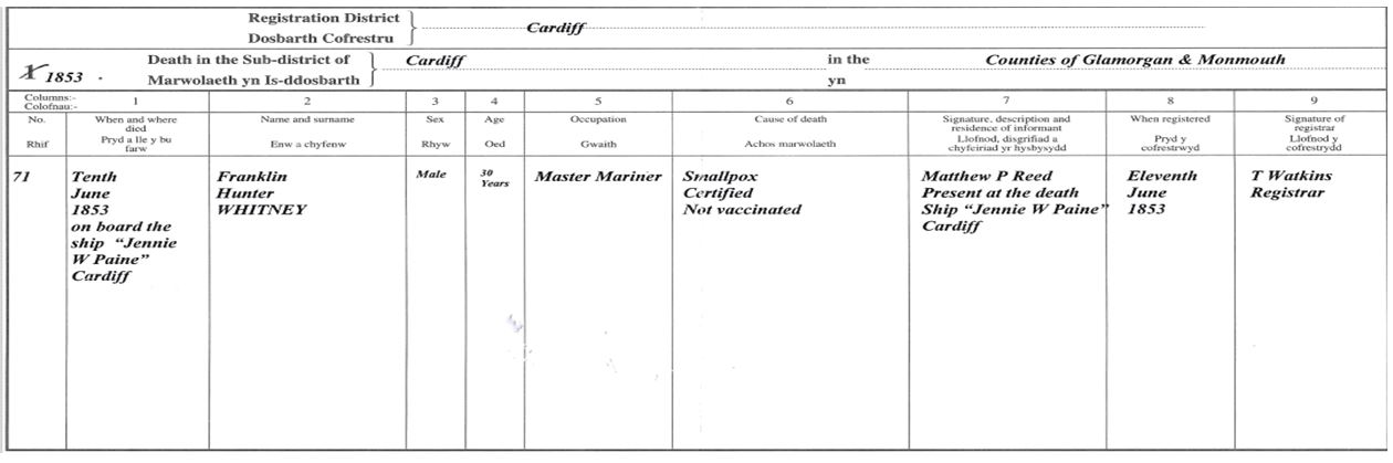 His body was returned to Cardiff and a large funeral procession set off from The Parade to Cathays Cemetery consisting of more than 20 private carriages and 60-70 members of the Salvation Army marching behind the coffin. The service was conducted by the minister of Charles Street Congregational and Bramwell Booth, son of William Booth. He was laid to rest alongside his first wife Susannah Billups.