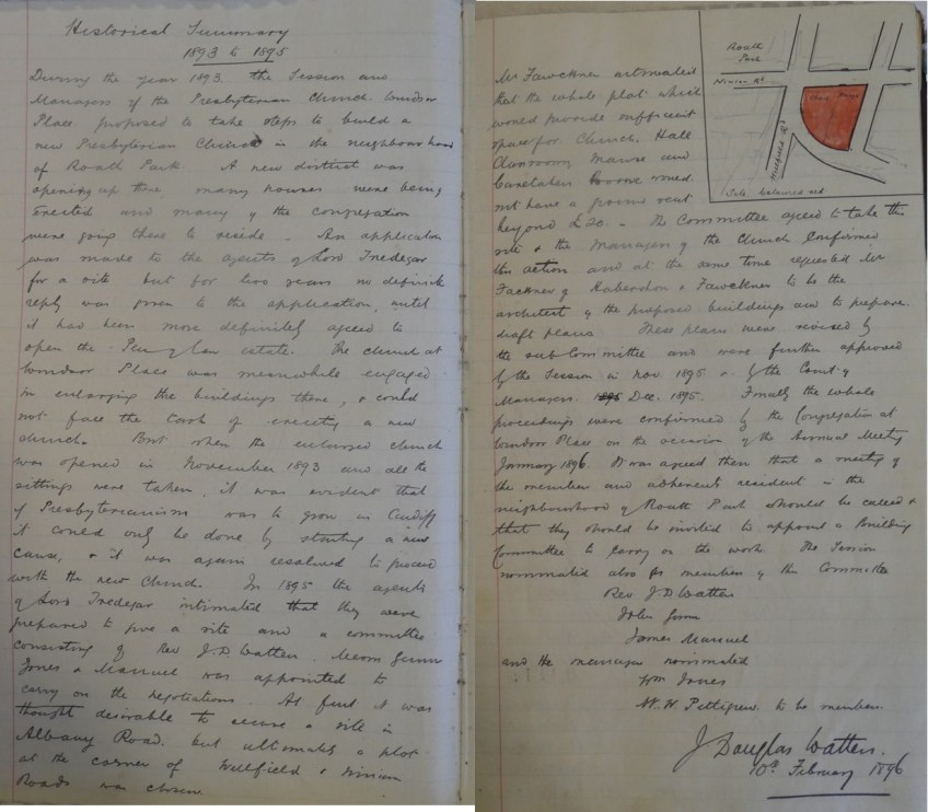 Early Church History – 1896 Published November 1, 2018 at 1233 × 1080 in Early Church History – 1896 The very early church history recorded in 1896. Note the sketch in the top right hand corner – there was then a road joining Marlborough Road and Penylan Road to the east of the church.