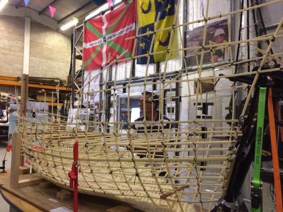 2018: Ted Richards looking intently at the 3-D scale replica of the Medieval Newport Ship