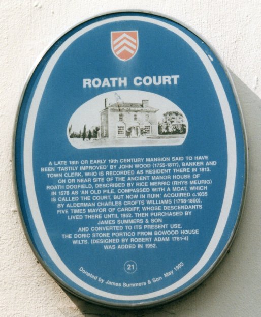 Acquired c.1835 by Alderman Charles Crofts Williams (1798-1860), five times Lord Mayor of Cardiff, whose descendants lived there until 1952, then purchased by James Summers & Son and converted into a funeral home. The Doric stone entrance portico came from Bowood House in Wiltshire and was designed by Robert Adam around 1761 was added to Roath Court in 1952.