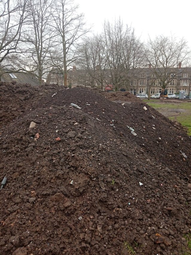 March 2024. The rubble cleared from an excavation pit as part of the cycle and pedestrian path development on Roath Recreation Ground near Pen-y-lan Library looks to have uncovered interesting glass bottles. They are probably 100 years old when the Recreation Ground was raised by 3 foot.