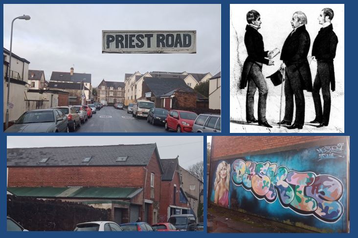 A street bereft of houses but with two repair garages housed in interesting old buildings. Named after Edward Priest Richards (1792-1867) who was agent to 2nd Marquess of Bute who helped him amass his fortune. Edward Priest Richards left his nephew Rev Stacey, the landowner, quite a fortune so it looks like Rev Stacey though he’d better name some roads after his uncle. Note the Victorian pillar box on the corner near Newport Road.