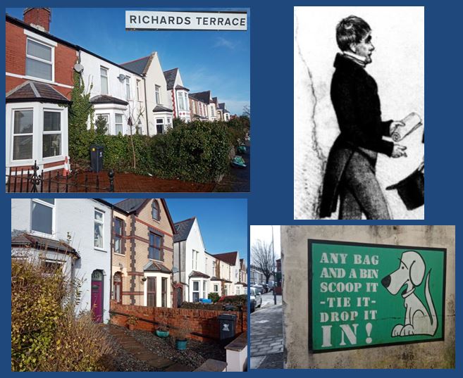 Named after Edward Priest Richards (1792-1867) who was solicitor and agent to the Marquess of Bute and who helped him amass a fortune. Not convinced about his haircut though. Houses date from 1877. Some houses still have the original villa names above the porch.