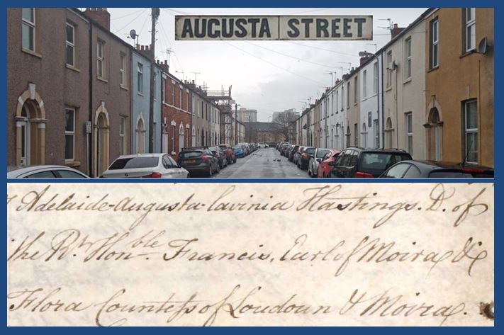 Houses date from 1857. Probably named after Adelaide Augusta Lavinia Hastings (b.1812), daughter of Earl of Moira and sister of the Sophia who was wife of 2nd Marquess of Bute, the landowner.