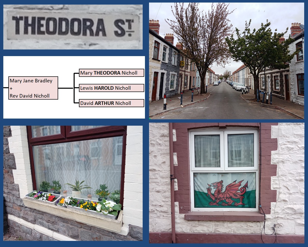 Built probably in the 1870s on land owned by the solicitor William Bradley. He named the street after his niece Mary Theodora Nicholl, daughter of Rev David Nicholl and Mary Jane Bradley. Theodora grew up in the hamlet of Edvin Loach, Herefordshire where her father was rector. She was the oldest of ten children and after her mother died when Theodora was just 14 she probably took over many of her responsibilities in both the rectory and neighboring church. Theodora never married and died at the rectory in 1914, aged 49.