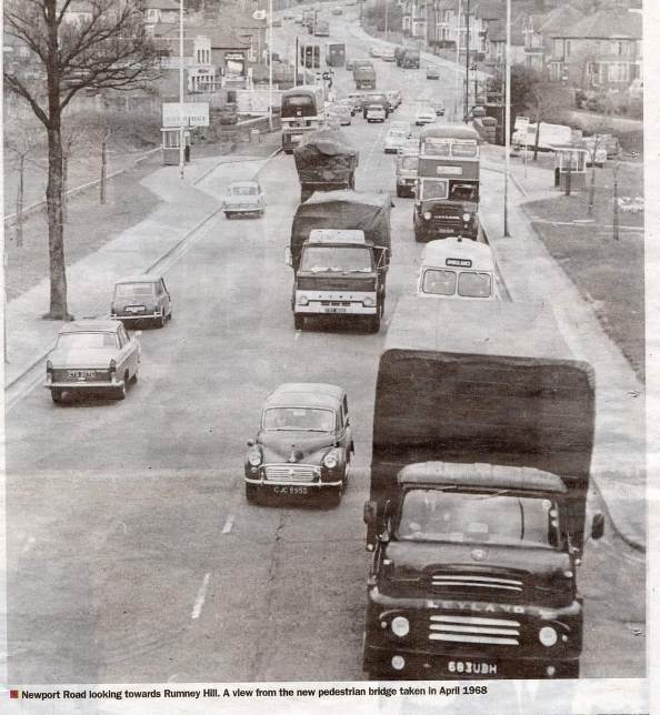 Billboards on Newport Rod, Cardiff in the 1920s opposite the bus depot.Pengam Coal Sidings at Newport Road in 1974 viewed from Rover Way Bridge and the area now a shopping area which includes TGIs.Newport Road sidings and Cardiff City Transport Roath Bus Depot in 1958.