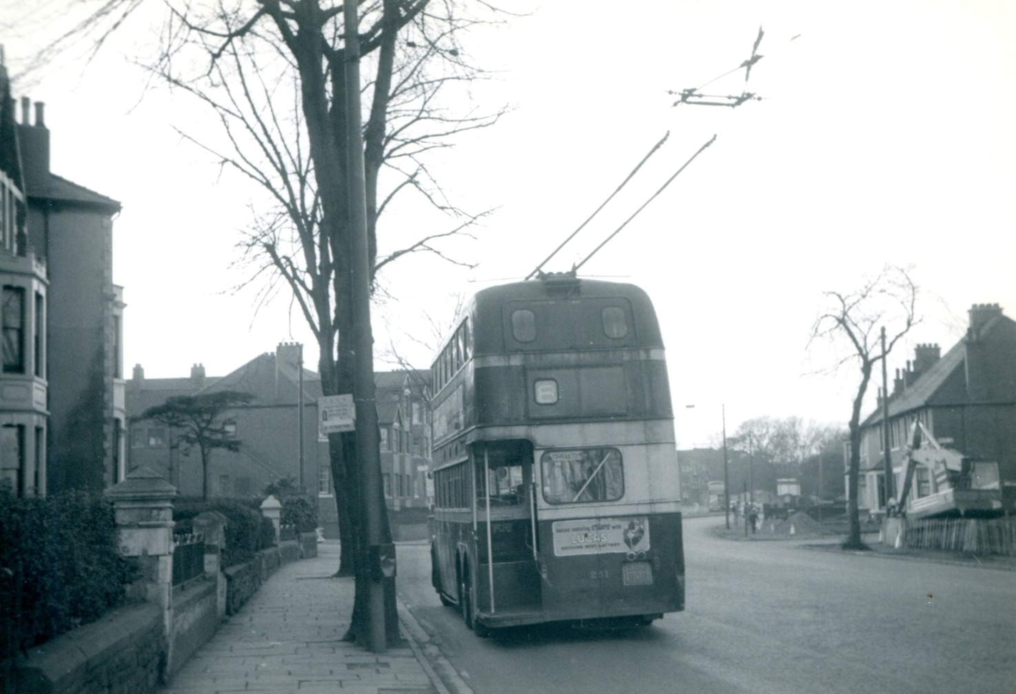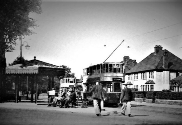 The Trolleybus is Cardiff #251 (EBO 908) which entered service in February 1950. The bodywork was built at Bruce Coachworks, who were based at Pengam Aerodrome in Tremorfa. It was withdrawn from service in April 1968 and scrapped by W. Way at their yard next to Cardiff East Dock. The photograph is taken at the Royal Oak Terminus in Newport Road on 17th February 1968 just two months before it was withdrawn from service. The street on the left is Richards Terrace with Minster Road on the right hand side. (Pic Credit: Mike O’Sullivan)The tram shelter at Royal Oak junction, Newport Road and Broadway in the 1940s .Tram Terminus on Newport Road, outside the Royal Oak