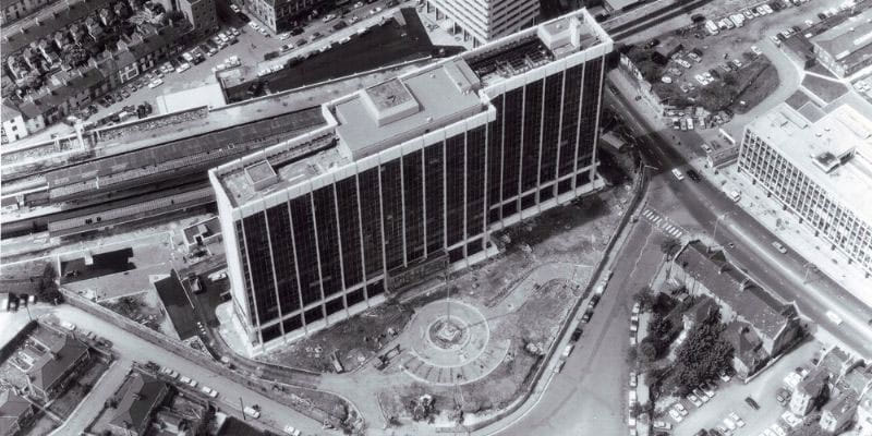 Brunel House on Fitzalan Road (year unknown). Newport Road and Cardiff University Queen’s Building / School of Engineering to the right. Queen Street Station to the top and interesting to see the terrace housing on Station Terrace at the top left.