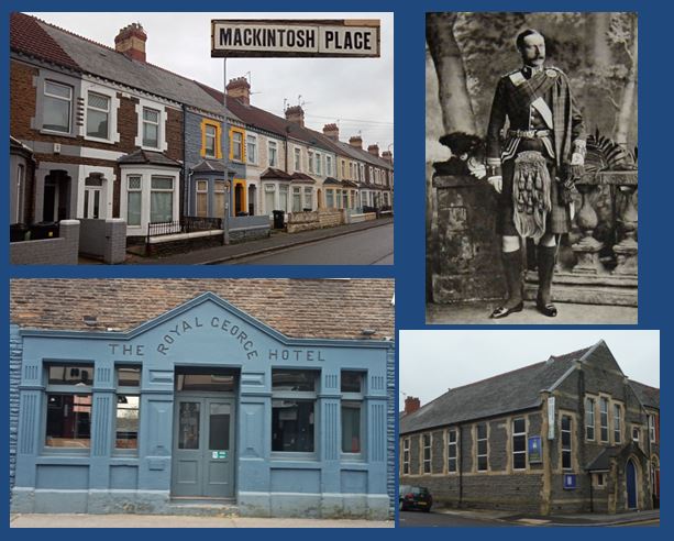 In 1880 Harriet Richards, whose family owned Plasnewydd (now the Mackintosh Sports and Social club) and a lot of surrounding land, married Alfred Mackintosh, chief of the Mackintosh clan, who had even more land in Scotland. When the land was sold for development many streets were named after them. Street dates from 1884. Mackintosh Gospel Hall, now called Mackintosh Evangelical church was opened in 1897.
