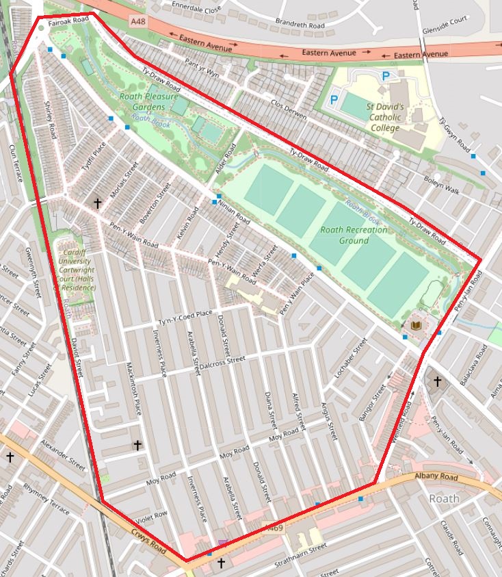 Dates from 1891. Built on land that was once part of Penywain Farm and owned by the Marquess of Bute. Can’t find a reason behind the street name yet or whether the name refers to Bangor, North Wales or Bangor, Northern Ireland or somewhere else. Roath Park Wesleyan Methodist Church was built in 1898 replacing a former iron church on the site. The congregation moved out in 1990. The street is known for good community spirit and street parties.