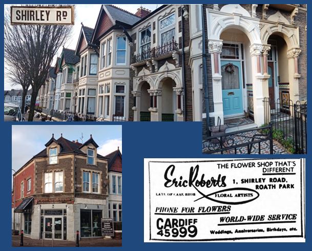 The houses date from around 1905. Not named after Dame Shirley Bassey which would have been nice, but after Lewis Vincent Shirley, the solicitor for both the Marquess of Bute and the Mackintosh estate. He died at Plasnewydd (now Mackintosh club) and left £74,000 in his will which is around £10 million in today’s money. An ardent conservative who got into a public spat with John Batchelor (the man with a statue in the Hayes). There has been a florist shop on the corner for many years as can be seen by the old 1957 advertisement.