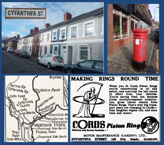 Dates from 1886. Cyfarthfa meaning ‘Place of barking’. Named not only to give Welsh learners some pronunciation homework but probably also to reflect the parcels of land in the valleys, including in the Merthyr area, owned by the Richards family of Plasnewydd House (later called the Mackintosh Institute). The pillar box at the City Road end dates back to Victorian times.