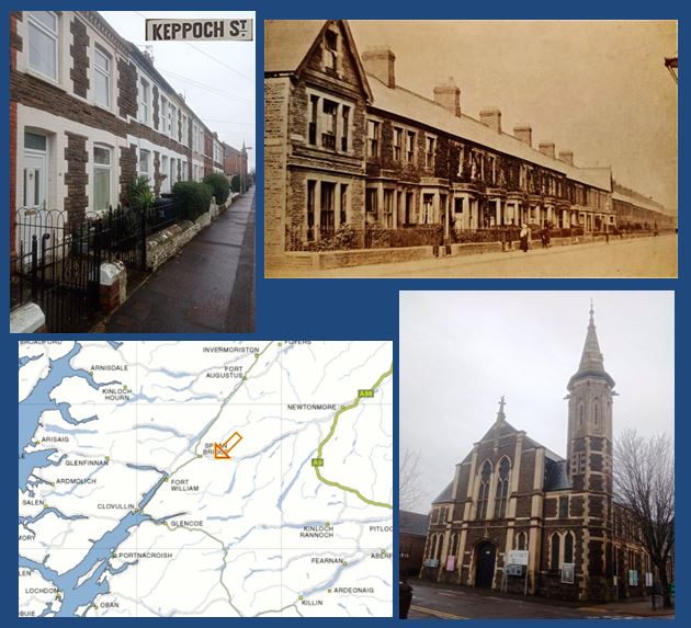 Named after a very small place near Spean Bridge, Inverness-shire, Scotland, home of the MacDonald of Keppoch clan. For many years the Mackintosh clan, who owned the land, fought battles with the MacDonalds over rent arrears. Plasnewydd Presbyterian Church is now the Gate Arts Centre. Notable Keppoch Road residents have included Joe Erskine, the British Heavyweight Boxing Champion, and the garden designer Ralph Hancock.