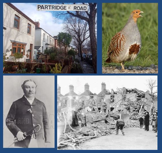 One of Roath’s oldest streets, laid out pre-1861. It was built on land owned by Charles Henry Williams of Roath Court, a keen sportsman and hunter and Master of the Roath Harriers. This possibly explaining the cluster of roads named after game birds. A partridge is a ground nesting bird which produces large clusters of eggs, typically 14-15. Partridge Road was bombed in 1941 suffering damage at the Crofts Street end.