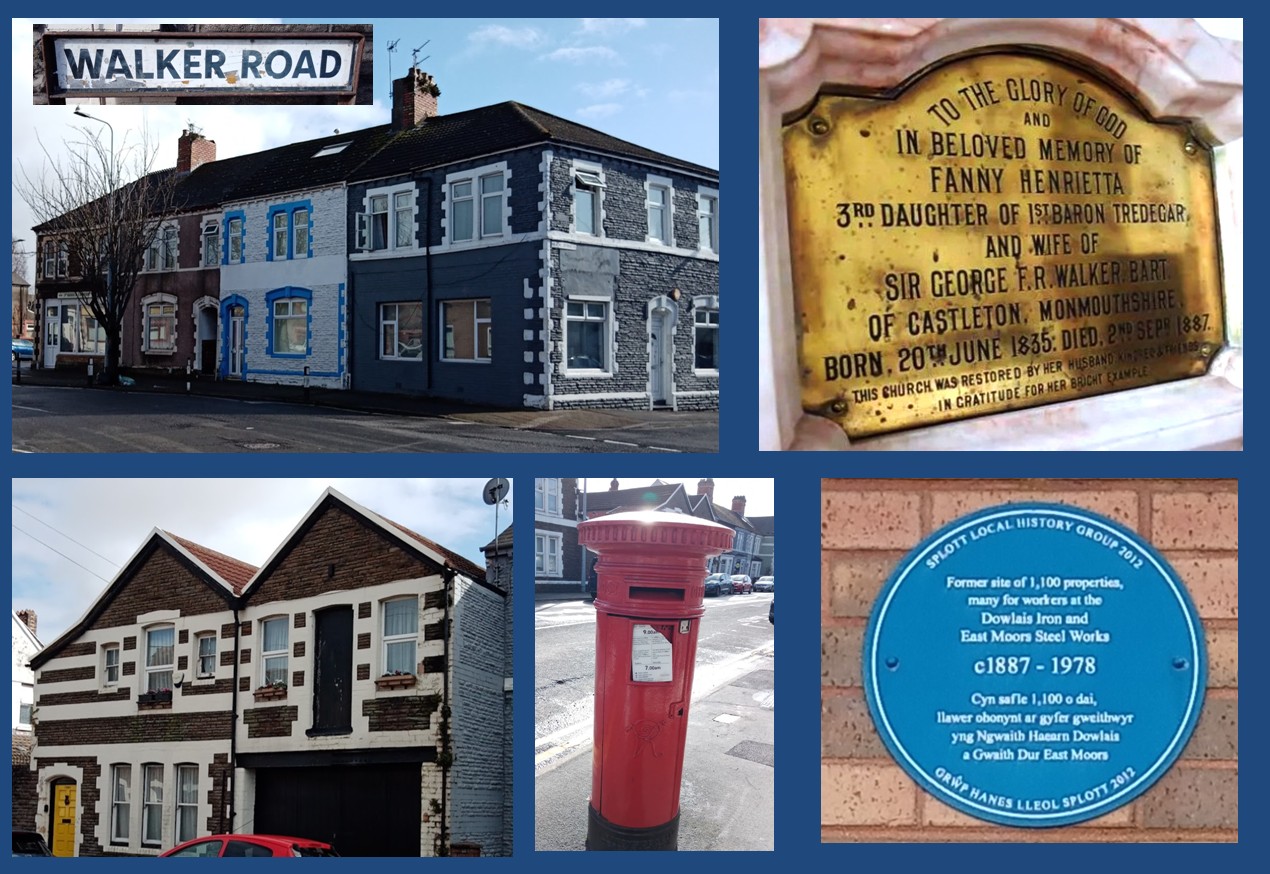 The houses of Walker Road, Splott date from the 1880s. They were built on land owned by Godfrey Charles Morgan, Lord Tredegar (the man depicted on horseback in a statue outside the City Hall). The road is probably named after his sister, Fanny Henrietta Morgan who became Lady Walker after she married Sir George Walker. Lady Walker tragically died in 1887 after being in a carriage accident. Following the accident she was taken unconscious to Alexandra Hotel (where the Capital Centre now stands) where she died a few days later. Sir and Lady Walker lived in Wentloog Castle in Castleton. She is buried in St Peter’s Church, Peterstone Wentlooge (now a private residence). A plaque in the former church commemorates her and the restoration of the church.