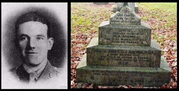 David Joseph Aherne (pic credit: IWM), Parent’s grave at Cathays Cemetery on which he is remembered.