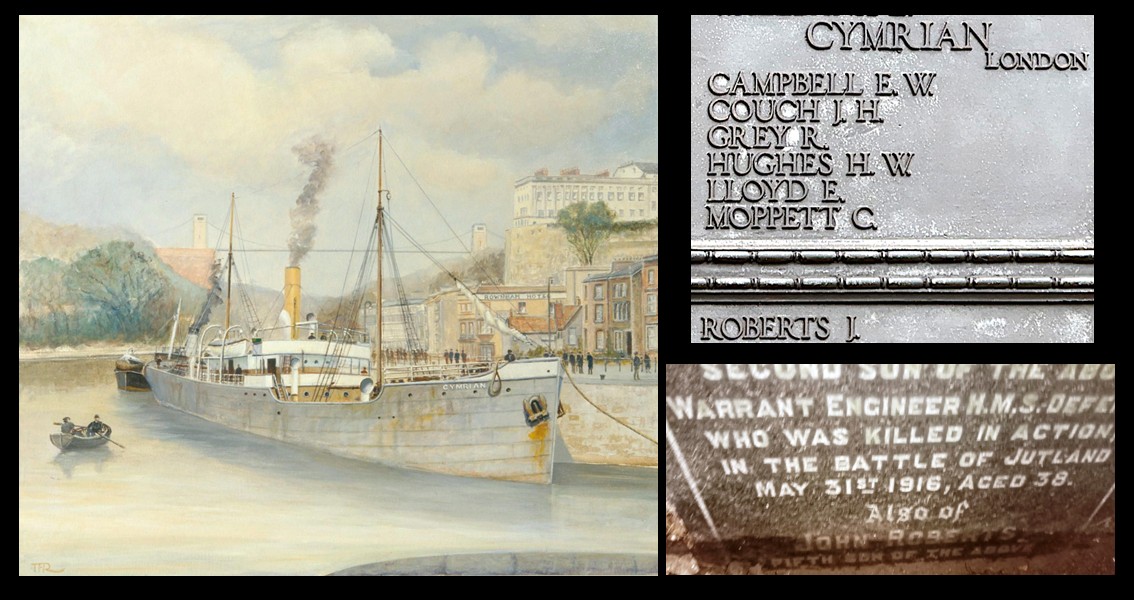 John ‘Jack’ Roberts was born in 1888 in Conway, Caernarfonshire to Thomas Roberts a master mariner and Catherine Roberts née Owens, both originally from Conway. By 1891 the Roberts family had moved to Cardiff and were living at 12 Loudoun Square, Butetown and by 1901 had moved to 184 Corporation Road, Grangetown. The census records them as speaking both Welsh and English. His mother, Catherine, died in 1913 and is buried at Cathays Cemetery. Jack married Isabella Laverick, a superintendant typist at St Stephen Church, Butetown on 2 Jan 1915. At the time Jack was working as a marine engineer. They lived with her parents at 37 Pomeroy Street and had one daughter together, Olwen Isabella Roberts, born in Jan 1917. During WWI Jack served in the Merchant Navy. He was killed, believed drowned, when the S.S. Cymrian, a coal shop heading between Newport and Dublin, was torpedoed by a U-boat and sunk in the St. Georges Channel on 25 Aug 1917 with the loss of ten crew. He was 28 years old. Both Jack and his brother Thomas Henry Roberts, who had been killed at sea the previous year, are remembered on his mother’s headstone. Their father, Captain Thomas Roberts, died later in 1917 at home in Corporation Road. Jack is remembered on the Tower Hill Memorial to Merchant Seamen. There is a possibility he is also the John Roberts remembered on the Pembroke Terrace Welsh Calvinistic chapel memorial. Commonwealth War Grave Commission record.