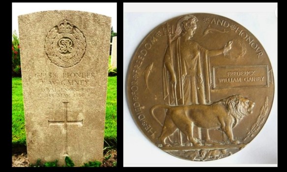 Frederick William Gainey was born in Cardiff in 1895 to William John Gainey, a general labourer, originally from Kington St Michael, Wiltshire and Elizabeth Jane Gainey née Hillier, originally from Cardiff. His mother died in 1900 and in the 1901 census Frederick, his two teenage sisters and widowed father were living at 82 Elm Street, Roath. By 1911 they had moved to 1 Blanche Street and Frederick was working as a jobbing gardener. In WWI Frederick served as a Pioneer with the 151st Field Company, Royal Engineers. He was killed in action on 1 May 1916 on the Western Front, aged 20. He is buried at the Rue-du-Bacquerot (13th London) Graveyard, Laventie, France (grave E.8). Commonwealth War Graves Commission record.