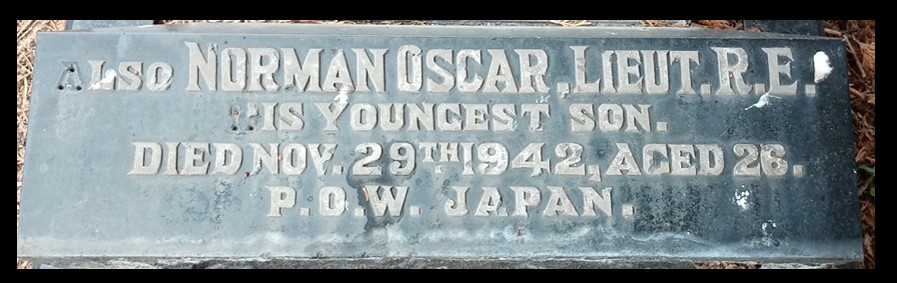 Norman Oscar Glossop was born on 28 Jan 1916 in Cardiff to Frederick William Glossop, a printer, originally from Manchester and Florence Glossop née Phillips originally from Upton Bishop, Herefordshire. He was baptised on 19 Feb 1916 at St Margaret’s, Roath when the family were living at 50 Kimberley Road. Norman attended Taunton School, Somerset. The Glossop family later moved to Faircot, 51 Cyncoed Rd. He is registered as living in Cambridge (1937-39), possibly attending university. In WWII he served as a Lieutenant in the Royal Engineers, seconded to 54 Engr. Stores Company King George V’s Own Bengal Sappers and Miners. He was captured on 15 Feb 1942 in the Battle of Singapore, one of approximately 80,000 Allied troops captured. He died 29 Nov 1942, aged 26, in Moji POW Camp in the south of Japan. He is remembered on the Singapore Memorial in Singapore and on the Taunton School WWII Memorial. He is also remembered on his parents grave in Cathays Cemetery, (grave EH 4315). Commonwealth War Graves Commission record.