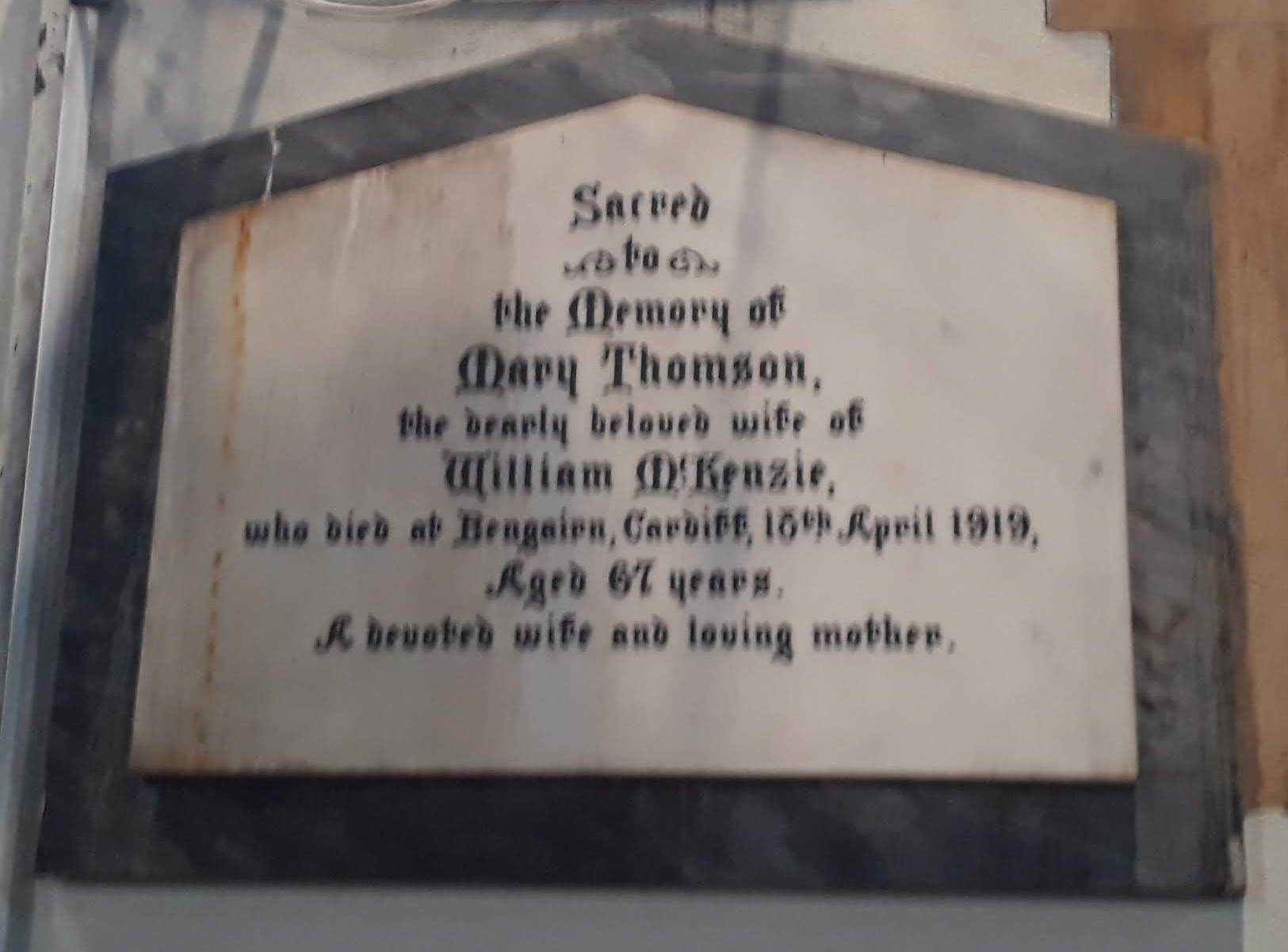 Mary McKenzie tablet in St Andrew’s Church, Roath, Cardiff Published October 10, 2018 at 1625 × 1201 in Mary McKenzie tablet in St Andrew’s Church, Roath, Cardiff