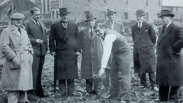 Maurice turns the turf as the foundations are laid in 1936 for the Cardiff Squash Club. He is watched by, from left to right Gerald Turnball Published July 31, 2019 at 640 × 360 in Maurice turns the turf as the foundations are laid in 1936 for the Cardiff Squash Club. He is watched by, from left to right Gerald Turnball