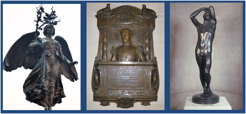 Parlanti castings in Cardiff: Boer War memorial, the Scott memorial plaque and Morpheus.