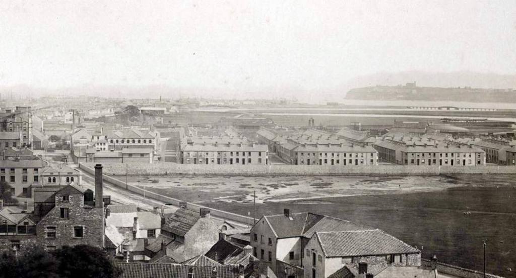 The five streets of terraced housing stood directly in front of Cardiff station, where the BBC building now stands. It was constructed in 1860.