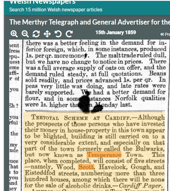 Temperance Town is no longer there. It was demolished in the 1930s and few people now will have first-hand memories of it. The land was then used for Cardiff Bus Station which wasn’t built until after WWII and in more recent years has been replaced by Central Square and the BBC building.